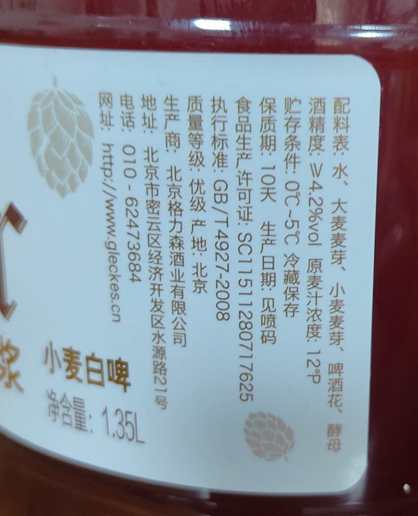 - 保质期:鲜啤由于含有活酵母菌,其保质期通常较短。虽然具体保质期可能因品牌和生产工艺而异,但一般不超过15天或更短。因为时间一长,酵母会沉淀,口感会影响,这一特点可以作为非常有力的间接证据之一。
